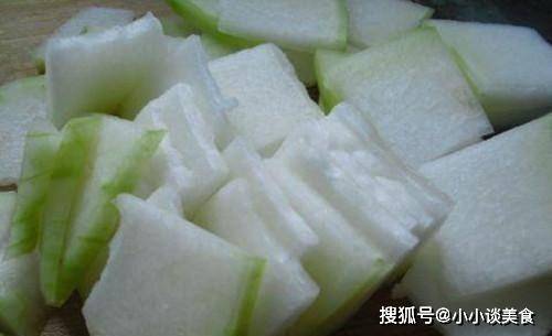 準備食材:冬瓜適量,豬肉一小塊,紅辣椒一個,蒜幾瓣,小蔥一個