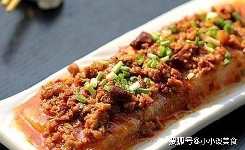 2、將冬瓜擺盤,先在表面撒上適量的鹽,再在上面撒上蒜末和胡椒粉,最後在冬瓜上放上肉末。