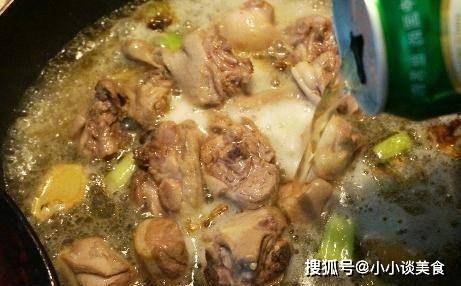 第四步:翻炒至出油,加入3湯匙蒸醬油,繼續翻炒均勻,然後淋上啤酒,這個一定要考慮到,可以蓋上鴨肉,和在高溫下煮沸。加熱,用中火慢燉;