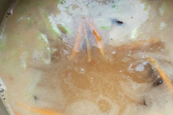 高湯是燉煮雞、鴨、豬時未加調料的清湯,比清水做湯底的味道好。一般把高湯裝盒凍入冰箱裡,需要的時候取出一點,加水一起用。沒有的話用“淘米水”,或者加少許傢樂濃湯寶提味也可以。