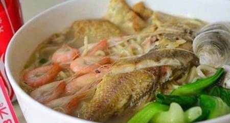 分量真的超足!前面寫的美食篇也提到過它。用的食材打撈自樂清清江一帶的跳魚、蝦、蟹等海鮮。吃這個面最大的感受就是食材占據瞭碗近一半的位置,味道也很鮮美,一滴湯都不想剩。