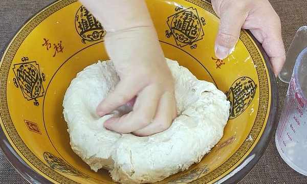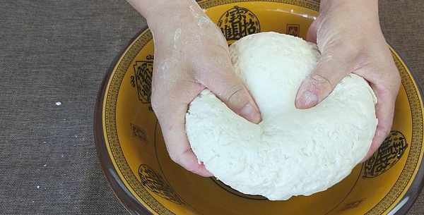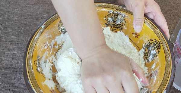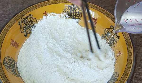 2、這個和面的方法學會之後,還可以運用到和發面上,和做發面的步奏基本都是差不多的,隻是把鹽換成酵母,涼水換成溫水,餳面的時間由兩分鐘增加到2小時以上