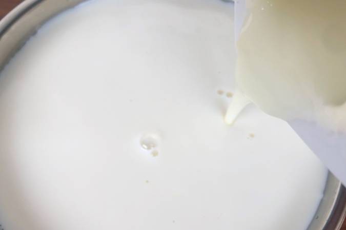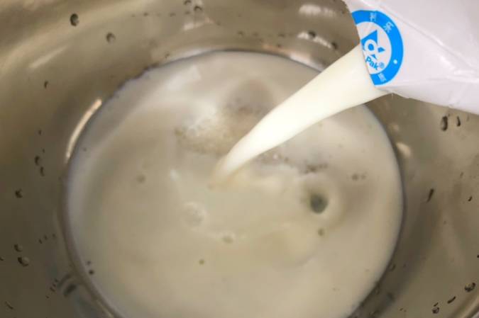 第二步:再把剩下的750毫升純牛奶倒入,攪拌均勻。