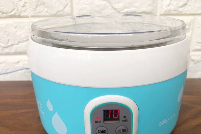 第六步:把大碗放入酸奶機裡,蓋上蓋子,按鈕調至酸奶,再把時間調10個小時。