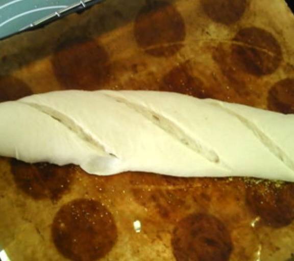 第16步、面團長大至1.5倍,在表面斜切出刀口。