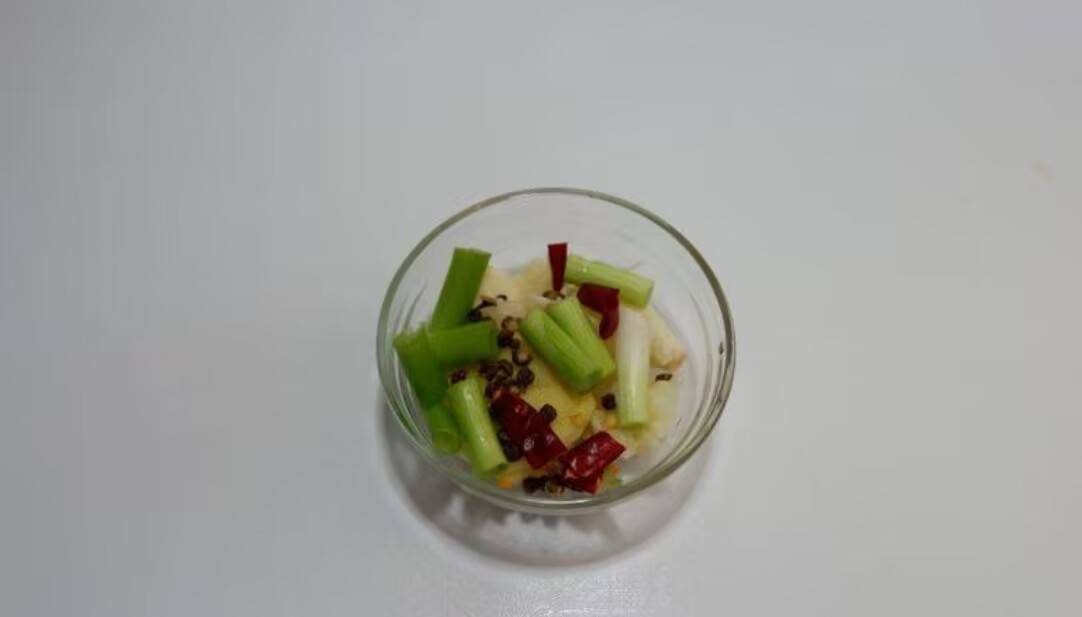 4.蒜瓣拍碎、蔥切段、薑切片、辣椒切小段、花椒備好。