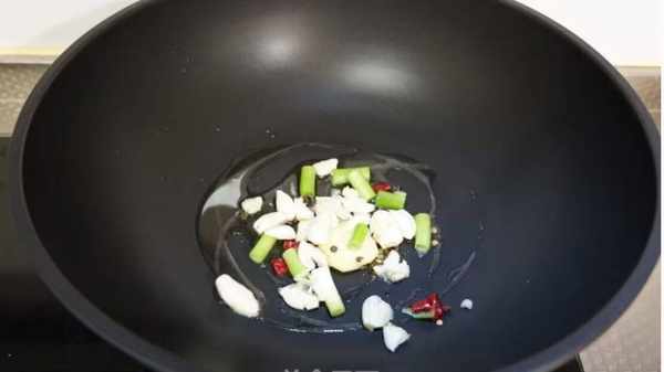 5.起鍋熱油,爆香蔥薑蒜花椒幹辣椒。