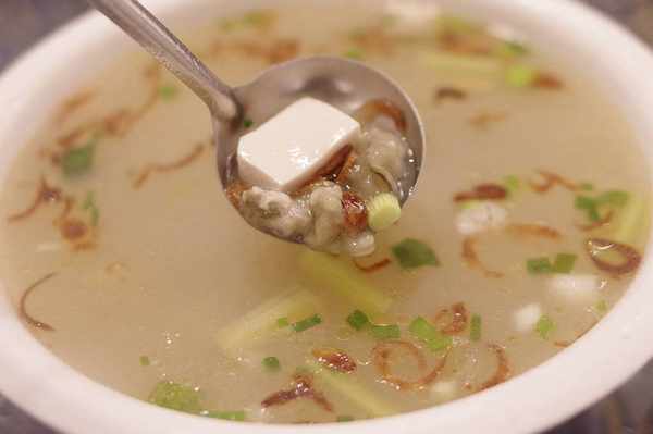 有原漿啤酒,按說不用湯。但是朋友聚會嘛,總會有人順手拎點啥,於是弄個清淡的海蠣豆腐湯解酒。