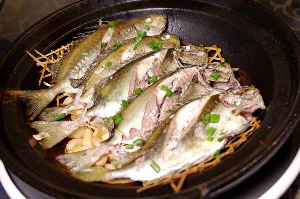 鹽水焗臭肚魚:這種又名“泥猛”“葉子魚”的東西肚子一定要掏幹凈,不然會沾染到魚肉帶有腥苦味,但是處理好瞭肉質不錯,魚味也濃,頗受饕客喜歡。鹽水焗的做法本色出演就很好吃。