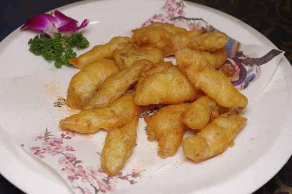 油炸絲丁魚:油炸食品特有的香酥油香和絲丁魚天賦異稟的水嫩,讓這道菜在排檔中點擊率頗高,椒鹽的點綴吃起來感覺更香。
