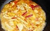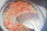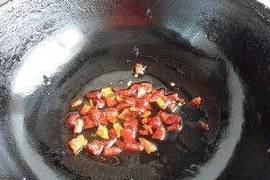 3.另起一鍋,鍋裡放第2步爆香的油,加入薑片、蒜片、花椒和幹辣椒爆香,待香味出來後放入豆瓣醬一起翻炒。