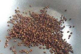 3.把花椒放入炒鍋內,小火幹煸至花椒出香,比較酥的時候關火