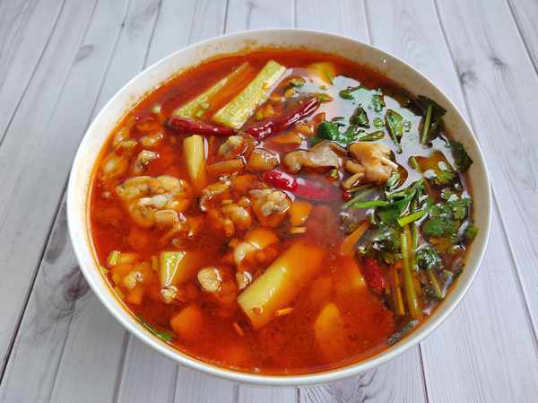牛蛙去皮去內臟,沖洗幹凈後,剁成小塊,加一些料酒抓洗兩三遍,去除腥味;把牛蛙控幹水分,加入淀粉、鹽和白胡椒粉抓拌均勻;鍋裡多倒些油,燒至七八成熱後,放入牛蛙炒至變色,盛出;放入泡椒、青椒、大蒜子、生薑爆炒出香味,再放入麻辣火鍋底料炒出紅油,倒入清水煮開,加入鹽、白糖、生抽調味,放入黃瓜條煮一兩分鐘盛出;放入牛蛙煮開後,繼續煮一分鐘左右,盛出;加一些香菜和蔥花,增加香味,就可以上桌瞭。