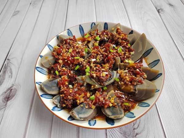把皮蛋煮幾分鐘,去殼後,切成小塊裝盤;碗裡加一些幹辣椒面、蒜蓉、蔥花、十三香,淋入熱油激發食材的香味,再加入鹽、白糖、生抽、蠔油、料酒、米醋拌勻;把調好的料汁,淋在皮蛋上就可以上桌瞭。