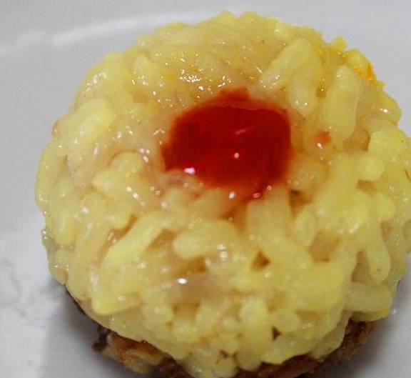 這是臘腸的米飯,感覺就是太小瞭,大傢可以用大一點的橘子,我用的太小瞭,一口都吃完瞭。