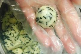 9.開始制作小球,稍微小一點,直徑2厘米左右(此配方可以做35個的量)