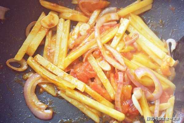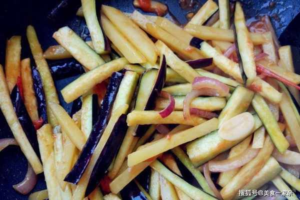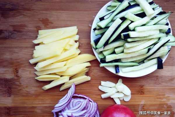 西紅柿、土豆和茄子,是每傢廚房裡常見的蔬菜。將這三種搭配起來,雖然是一道素菜,也非常好吃,其中包含西紅柿的酸,洋蔥和茄子的甜,再加上土豆條的脆,和少許醬香味兒提鮮,所以非常開胃下飯。這三種顏色和營養不同的蔬菜,不但味道相合,營養也相得益彰。西紅柿可以提供充足的番茄紅素,對視力有益,土豆含淀粉多,不會吃瞭很快就餓,茄子可以清熱活血,消腫止痛,還能防治高血壓和心腦血管疾病,抗癌能力是其他蔬菜的幾倍,不是脾胃虛寒的人可以多吃一些。
