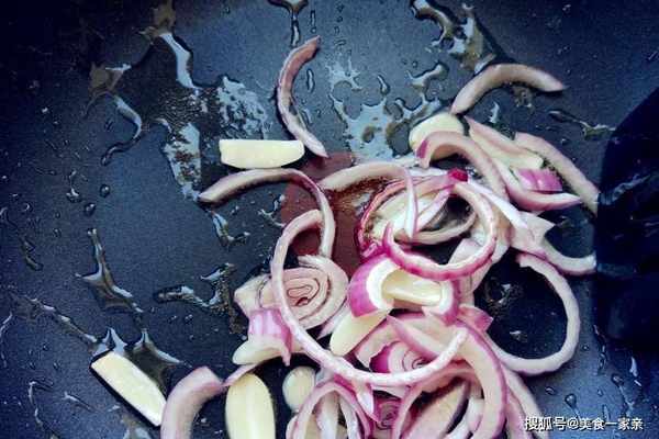 2.將植物油倒入炒鍋中,爆香蒜片後,倒入洋蔥翻炒。