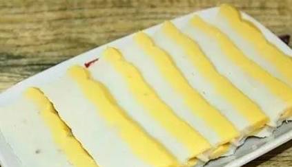 制作雞糕是以雞胸脯肉為主料,配之以適量的鮮蝦仁、雞蛋、山藥、豆粉、蔥薑汁等輔料,加上十多種調味品制作而成,其主要工序是把雞胸脯肉與噘魚肉放在清水裡浸泡去掉血水,使之潔白如玉,然後撈起晾幹斬成肉泥把雞蛋清放在肉泥裡,再把撲碎的山藥,鮮蝦仁與鮮粉及調味品一起放人,充分攪拌使之均勻,成為粘性較強的白色糊狀,按一寸左右的厚度推在籠上備蒸。將蛋黃放人備留的少許肉湖內攪拌,成為黃色糊狀,再均勻地攤在籠中的肉糊上面,小火蒸熟,取出冷卻後即成雞糕。切成半尺見方的塊子備用,待到做菜時,再用刀將塊子切成薄而透明的片子,開水下鍋,一滾即盛盤,你就可以品嘗到名聞遐邇的美味佳肴瞭。