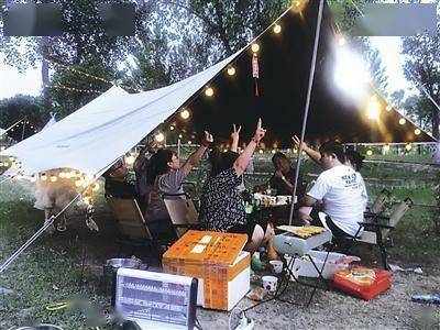 5月15日晚,記者走進一間房車露營小院,十多人分成兩桌落座,男女各占一桌。女士們談天說笑,男士們飲酒暢談,桌上的美食讓人垂涎欲滴,一旁的燒烤爐散發著誘人的香味。“公司周末生意忙,今天相對輕松點,同事們出來聚聚。”市民秦先生告訴記者。