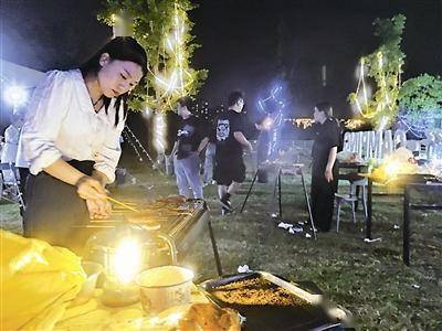 一片綠茵、一塊天幕、一頂帳篷、一桌美食......三五好友在星空下圍爐夜話,盡享夏日之夜的美好。連日來,隨著我市氣溫的持續升高,戶外露營的熱度也在不斷升溫,“露營+燒烤”更是讓“夜經濟”火出新高度。