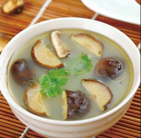 材料/鮮香菇塊250克,豬瘦肉塊、雞骨架塊各100克,香菜葉少許。
