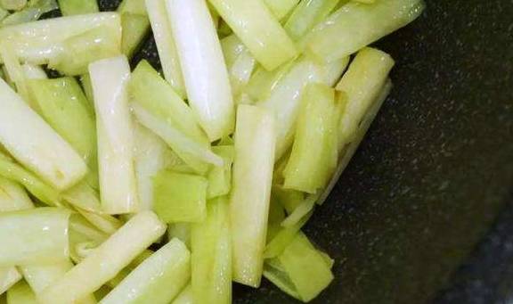需要註意的是,一定要用大火來爆炒,這樣才能保證蒲菜的脆爽。