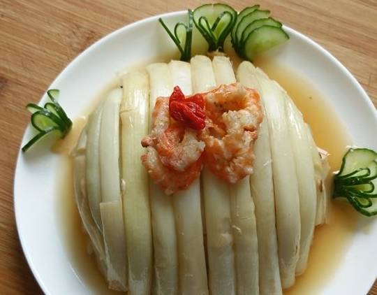 蒲菜,其質地柔嫩,潔白清香,口味鮮美,營養豐富,淮安廚師可烹制數十款的蒲菜菜肴,其中,“開洋蒲菜”、“雞粥蒲菜”已被列入《江蘇名菜譜》,可以說,蒲菜經過廚師的精心打造,更添江南風情。