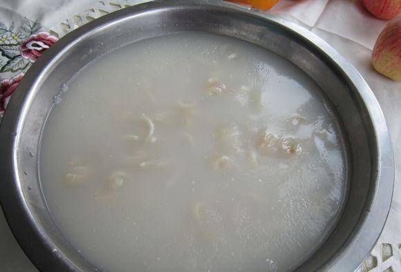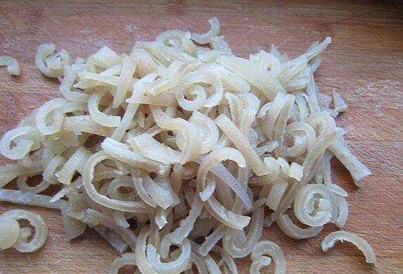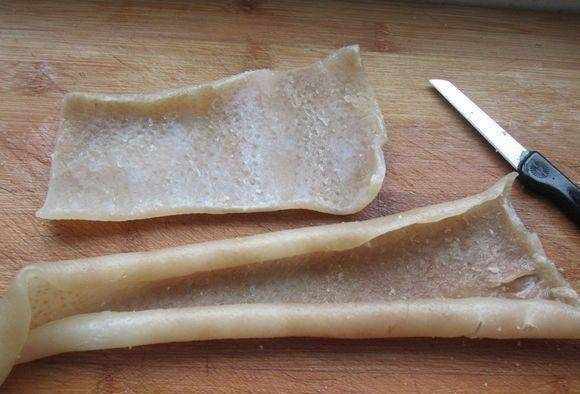 6、豬皮洗凈,用刀切成細條