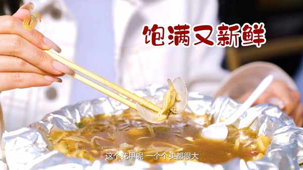 主持人:花甲粉我真的是很愛吃,他傢的這個花甲粉份量也太大瞭吧。大傢看一下,這個花甲呢,一個個頭都很大,處理的也是很幹凈,一點沙子都沒有,這個粉絲(米粉)也是非常的細嫩爽滑,嗦一口非常地滿足,(米粉)裹滿瞭湯汁。像什麼羊肉卷甜不辣都可以往裡面加,根據自己的喜好來加就可以瞭,強烈推薦給大傢。