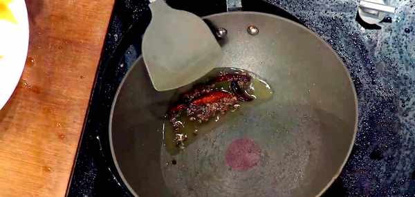 鍋中加適量食用油,放入花椒,小火煸香,然後放入辣椒,煸炒至變色,澆在豬蹄上面,美味的麻辣豬蹄就完工瞭。
