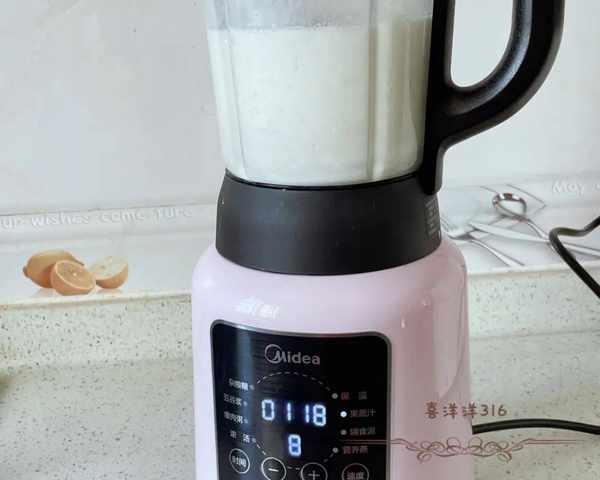 [3] 倒入料理機,按果蔬鍵打成細膩的糊糊。