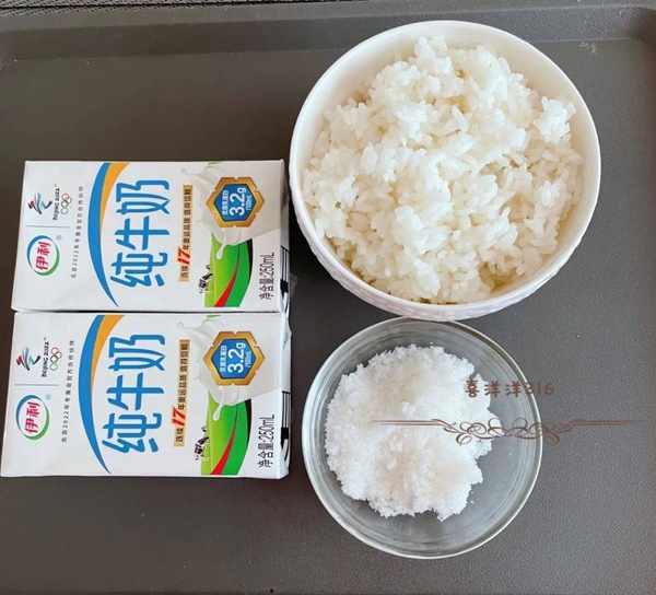[1] 將米飯和牛奶倒入鍋中。
