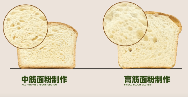 加入等量的水時,高筋粉由於蛋白質含量高,會吸收更多的水,形成較多面筋,面團外部會比較幹,而低筋粉則不容易吸水成筋,面團較為稀軟。這也決定瞭二者烤制後的形態、口感有很大不同。