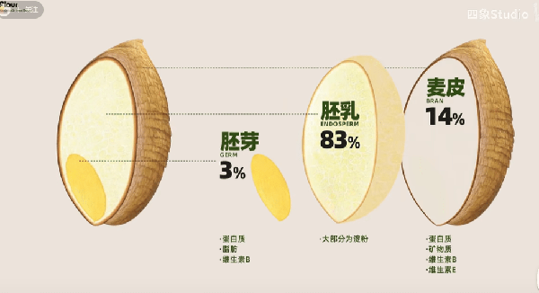 面粉,又叫小麥粉,是通過對小麥的研磨加工制成的。一粒小麥由麥皮、胚乳、胚芽三部分組成。