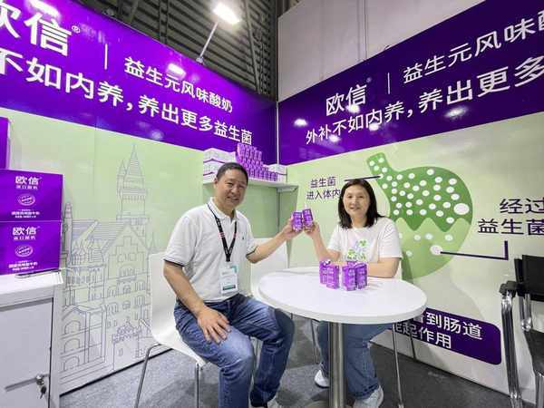 在展會現場,消費者們可以免費試喝產品,直觀的感受到歐信益生元風味酸奶獨特的醇香口感,以及益生菌進入體內帶來的腸道蠕動體驗。據瞭解,歐信益生元風味酸奶已申請“一種添加益生元促進益生菌繁殖的酸奶配方”的國傢專利,多元化產業優勢讓他們在競爭激烈的酸奶市場中脫穎而出,銷售業績不斷攀升。
