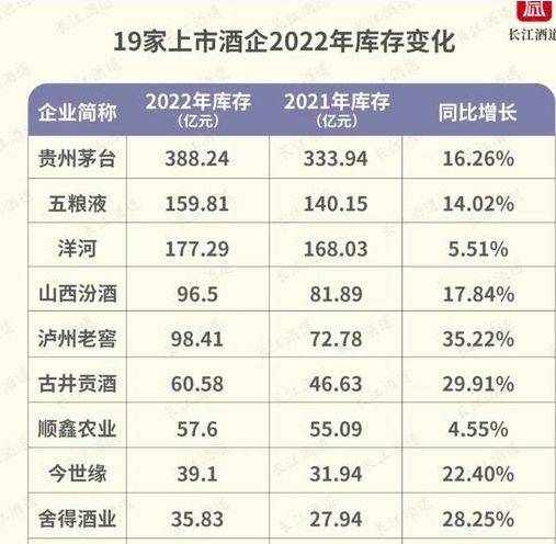 據統計,2022年19傢A股白酒上市公司總存貨1323.6億元,如果算上非上市公司的存貨,白酒行業的存貨總量更大。