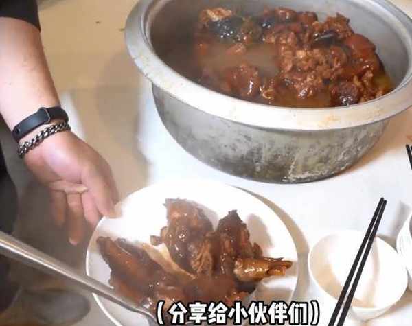 這兩天他又發瞭一條燉豬蹄的視頻,訓練營的那些朋友,知道他有一副好手藝,便哄著他幫忙做飯。胖猴仔為瞭證明自己的廚藝,便給大傢做瞭一道燉豬蹄,足足燉瞭1個半小時。
