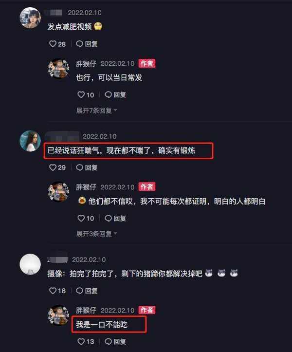 有人質疑胖猴仔,減肥隻是拍視頻作秀,其實他根本就沒運動。說不定視頻拍完之後,剩下的豬蹄全讓他一個人吃瞭,到時候不僅沒瘦下來,指不定還要胖上好幾十斤。