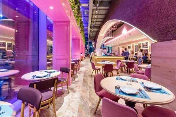 這傢位於太古匯頂層的餐廳,擁有落地大玻璃,長廊型設計,粉紅元素隨處可見,超級有羅曼蒂克的氛圍。