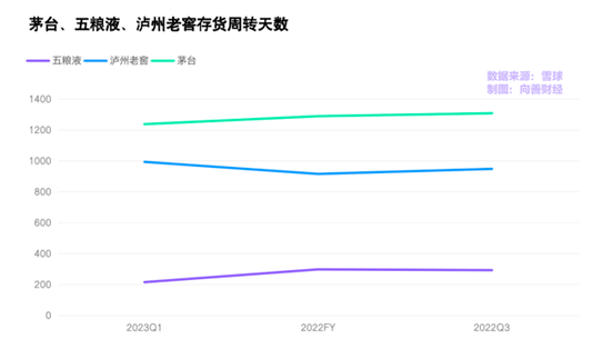 從存貨周轉的情況來看,一季度瀘州老窖存貨周轉天數為992.28天,環比增加瞭78天