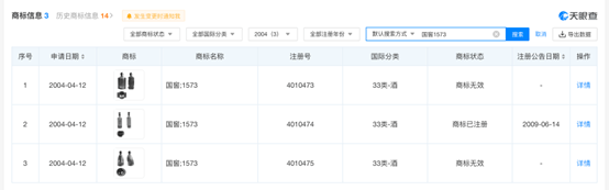 天眼查APP顯示,瀘州老窖早在2004年就曾註冊過國窖1573商標,經過這麼多年的發展,老窖產能提升瞭多少,接下來,高端酒產能能不能支撐品牌高端化需求,是重點所在。