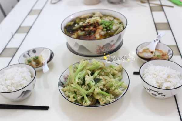 孩子不在家,只有老兩口在家吃飯,做了一個脫糖飯,做了一大碗酸菜魚,還有幹煸的有機菜花,簡簡單單的兩個菜配上米飯,吃得很愜意。記錄到朋友圈,網友都說:這還簡單啊,可比外賣强太多了。