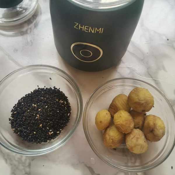 所用資料:黑芝麻半碗,栗子10顆,牛奶少許,水適量。