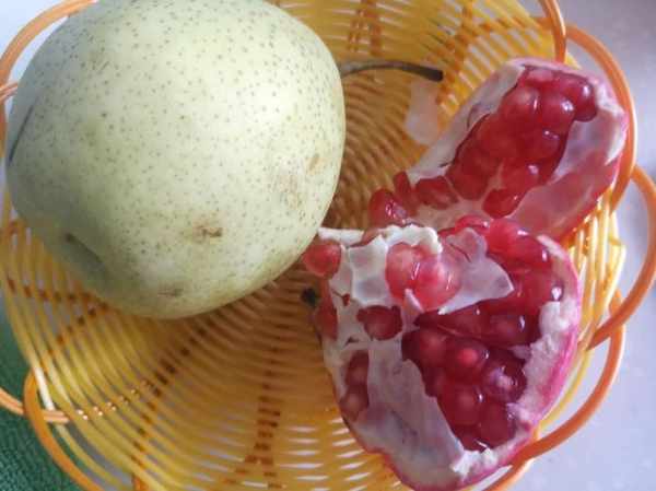 石榴不僅能幫助消化,石榴中的維他命C和多酚類物質有很强的氧化性,能消毒殺菌、收斂止血,還能增强食欲、防止心血管疾病。梨子可能給人的印象就是潤肺止咳,其實不僅僅是這樣,梨子的减肥效果很好,還能緩解感冒的症狀,清熱降火。石榴吃多了很容易上火,而且容易引起便秘,而梨子正好是緩解便秘的,但梨子寒性較大,吃多了容易拉肚子,石榴正好在一定程度上可以治療拉肚子,正好可以起到互補的作用。
