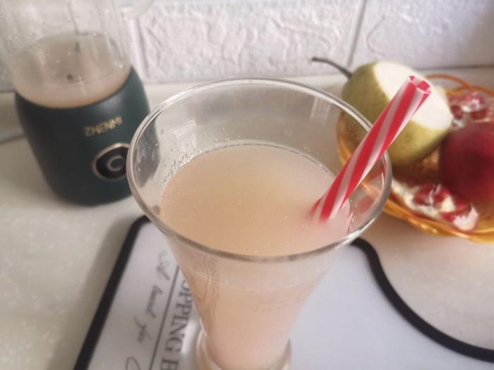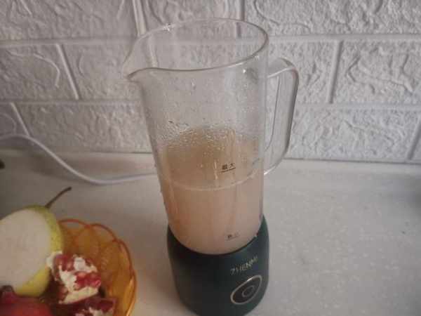 2分鐘不到就可以輕鬆搞定,打好以後,倒出石榴梨子汁,看得出細膩無渣。
