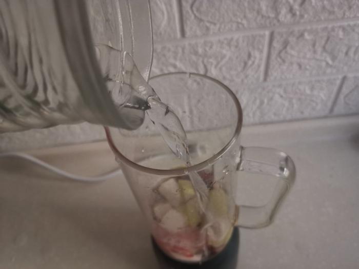 加入適量的礦泉水,打一次足够2個人一人一杯。