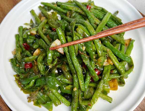 食材:豆角、青椒、蒜、豆豉、幹辣椒;