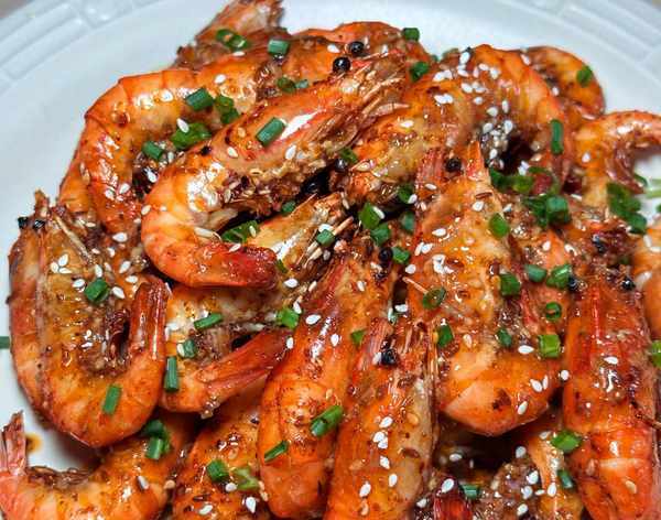 材料:大頭蝦(其他蝦也可以)、生薑、料酒、孜然(粉或者顆粒都行)、大蒜粉、辣椒粉、白芝麻、蠔油、生抽、糖