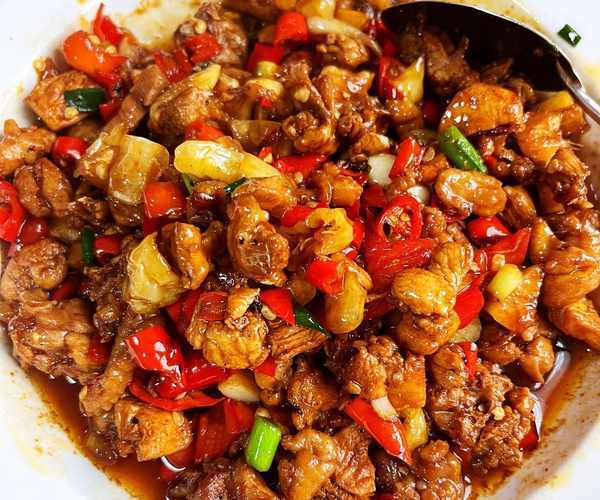 食材:鮮雞,紅線椒,泡椒,小米椒,幹紅辣椒,薑蒜,香蔥。